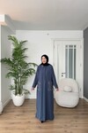 CEP VE YAKA NAKIŞLI PAMUK KETEN ELBİSE 7106 İNDİGO